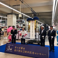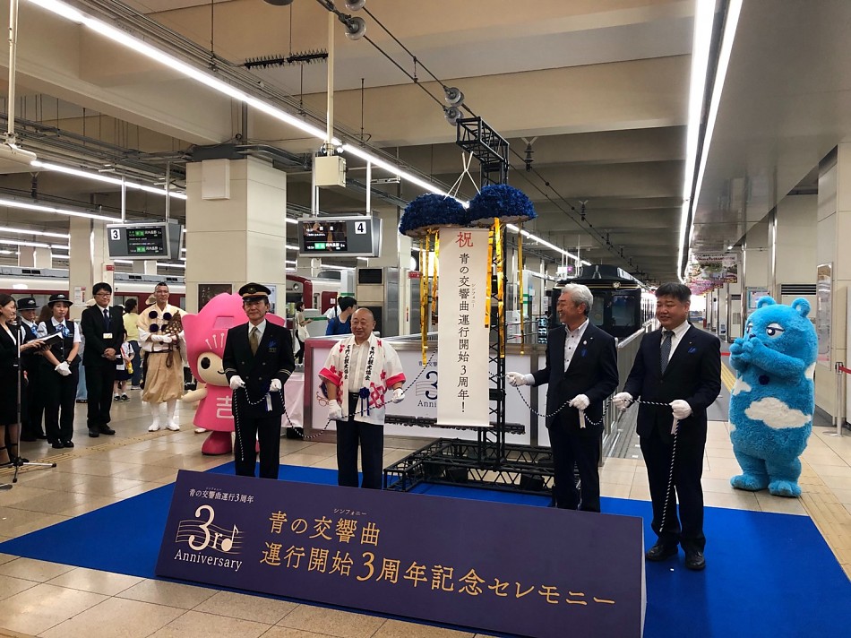 大阪阿部野橋駅で9月11日、観光特急「青の交響曲(シンフォニー)」運行開始3周年記念セレモニーが開かれました。